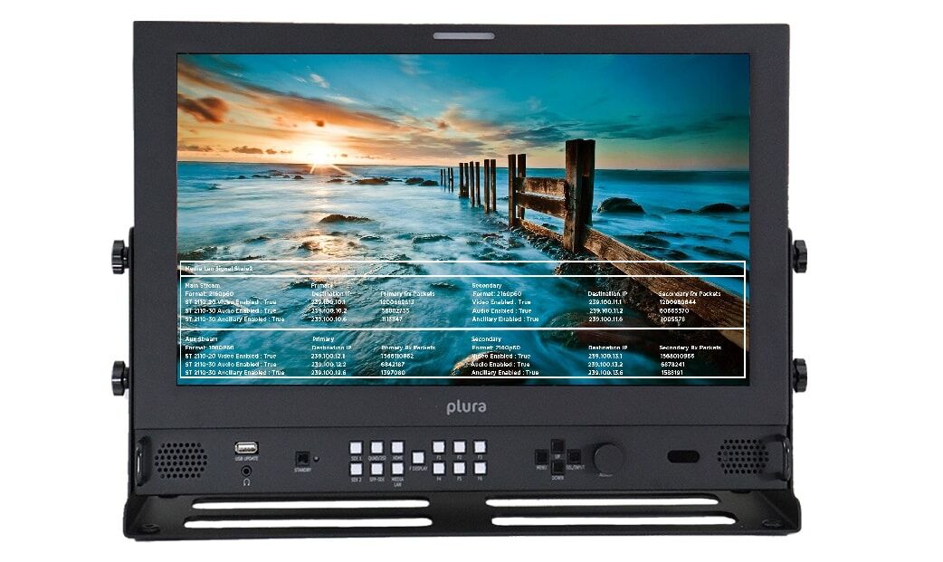 17" - IP Broadcast Monitor (1920 x 1080) - HDR Capability, supports 3G/1.5G SMPTE ST 2110 signals across dual 10 GigE, features 2x 10 GbE SFP+ cages complying with SMPTE ST 2022-7, providing redundancy protection for critical distribution and monitoring applications hitless switching, direct 3Gb/s BNC I/O connectivity and Coaxial SFP I/O connectivity. Remote Media Management 1GbE port Ember+/ NMOS supported. Including 1 YR. IP-2110-2022-7 support, upgrade functionalities and service contract. Two generic and compatible SFP+ 850mm LC MMF modules are INCLUDED.