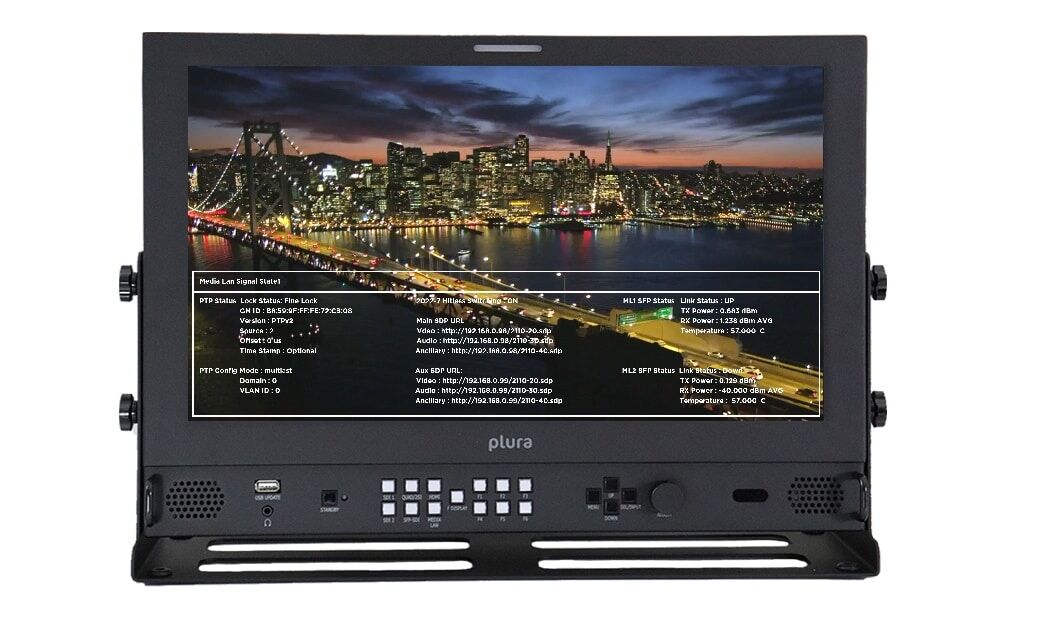 24" - IP Broadcast Monitor (1920 x 1200) - HDR Capability, supports 3G/1.5G SMPTE ST 2110 signals across dual 10 GigE, features 2x 10 GbE SFP+ cages complying with SMPTE ST 2022-7, providing redundancy protection for critical distribution and monitoring applications hitless switching, direct 3Gb/s BNC I/O connectivity and Coaxial SFP I/O connectivity. Remote Media Management 1GbE port Ember+/ NMOS supported. Including 1 YR. IP-2110-2022-7 support, upgrade functionalities and service contract. Two generic and compatible SFP+ 850mm LC MMF modules are INCLUDED.